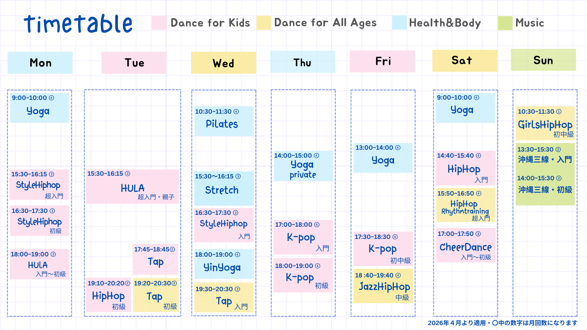 第2・4 水曜19:20~20:30(入門クラス)